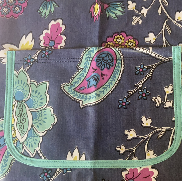 TABLIER DE CUISINE EN TOILE CIREE PRATIQUE ET ELEGANT BEL IMPRIME FLEURI BLEU
